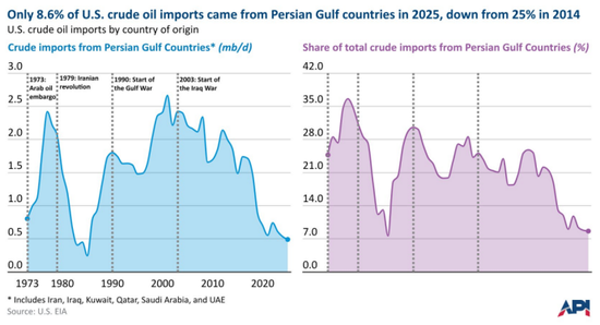 物流数据参考:因时间久远,回溯难度大,仅从美国自在海湾国家进口的量级来说,1980年后量级从220万桶日,逐步降低至约30万桶日,而后逐步回归,至1990年恢复至170万桶日,至2000年前才再创高位。