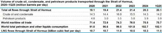 这个数据很透明,全球消费1.02亿桶/日,全球石油贸易量为7570的万桶/日,经由霍尔木兹海峡的石油贸易量为2010万桶/日(占全球消费约20%,占全贸易量约26%),其中+凝析油约1400万桶/日,石油产品约600万桶/日。