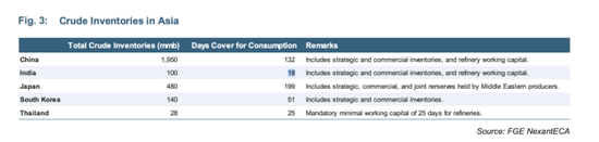 其他亚洲地区:据FGE的数据,印度、日本、韩国库存非常有限。受影响可能更大。