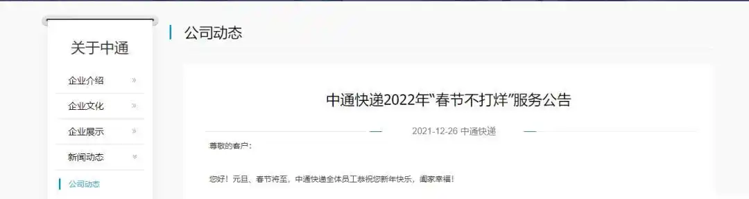 多家主流快递企业,也就是中通、韵达、申通以及极兔等,纷纷发布了有关服务的公告,承诺在2022年1月30日到2月4日这段时间里,会提供“春节无休服务”。这就意味着,就算是在大年三十,你的包裹同样也在道路上奔波,无需担心会出现断档的情况。
